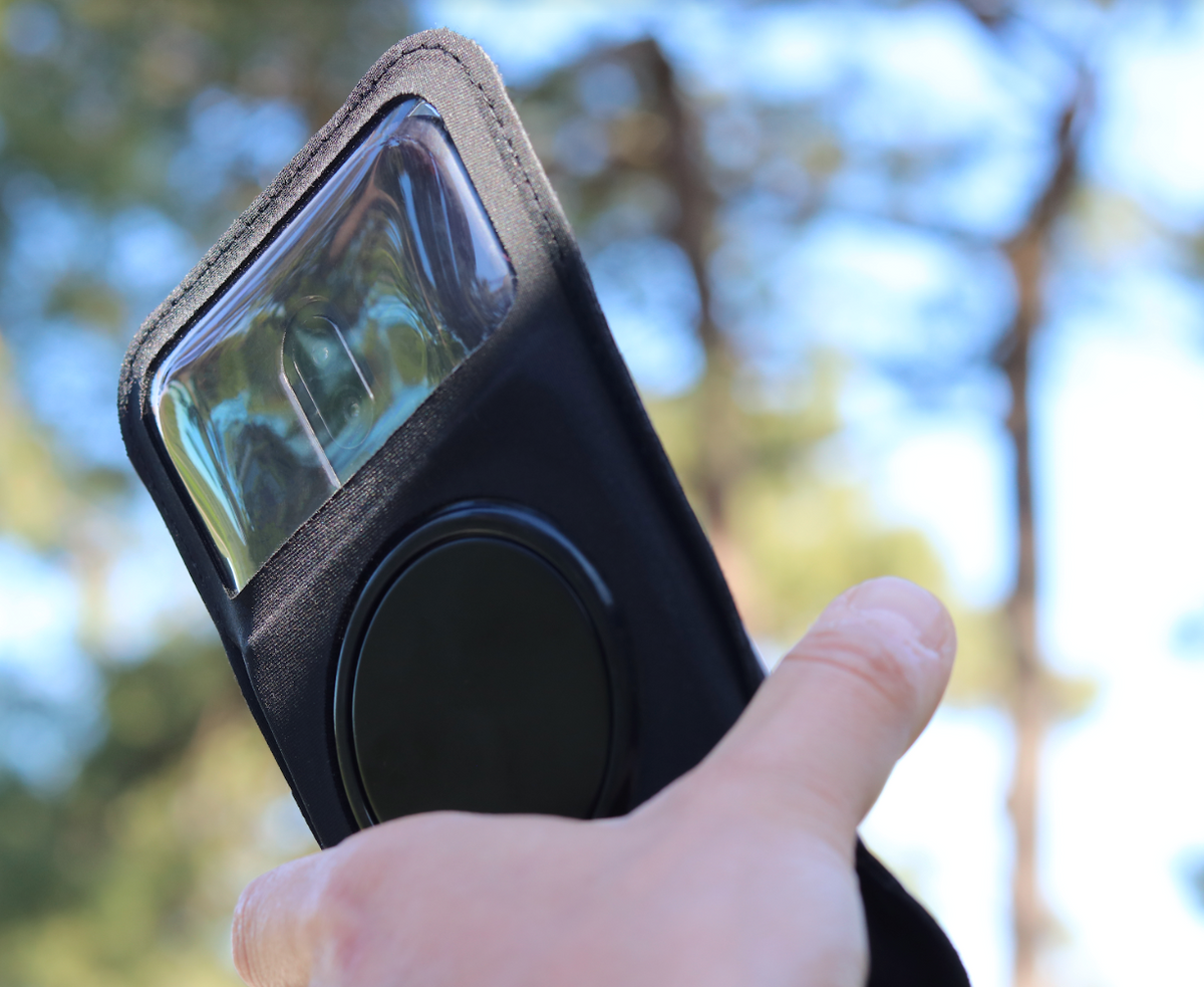 Il devrait pouvoir y avoir des pochettes évidées au centre pour laisser libre l’espace tactile utile du GPS, ou bien des pochettes en plastique mat, non brillant.