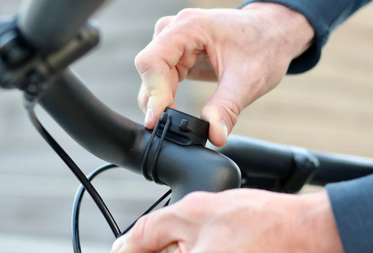 - Coloca el soporte en el manillar o la potencia después de haber atado previamente la correa en 2 ganchos.