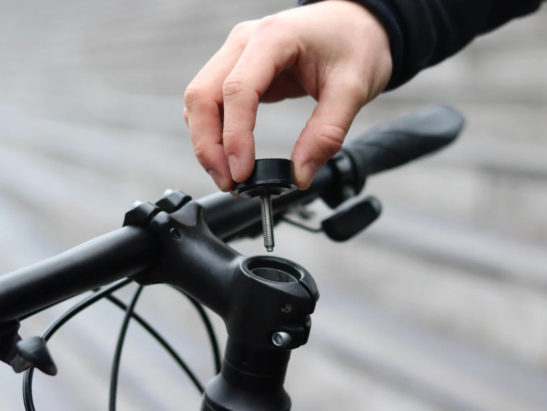 El soporte para tubo de horquilla se integra en tu bicicleta al atornillarse en lugar del tapón de la potencia. Es compatible con las direcciones M6.