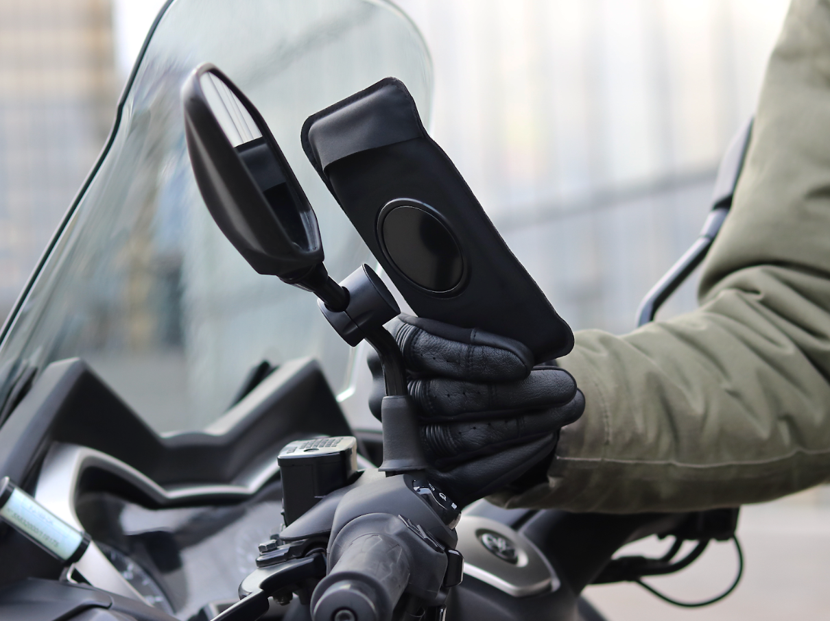 Gracias a los distintos soportes magnéticos para scooter, puedes fijar tu smartphone al espejo retrovisor en segundos y usar fácilmente tu GPS para navegar.