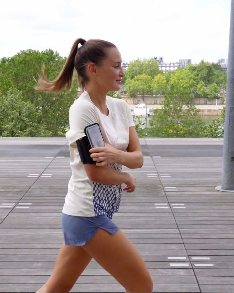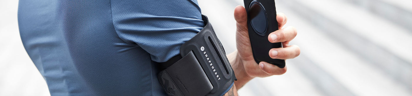 Cinturón deportivo ajustable con compartimento, funda táctil con fijación magnética.