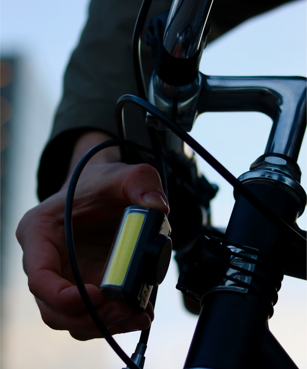 Simplemente retira la luz de su soporte magnético para recargarla o al aparcar la bicicleta en el exterior para evitar robos.
