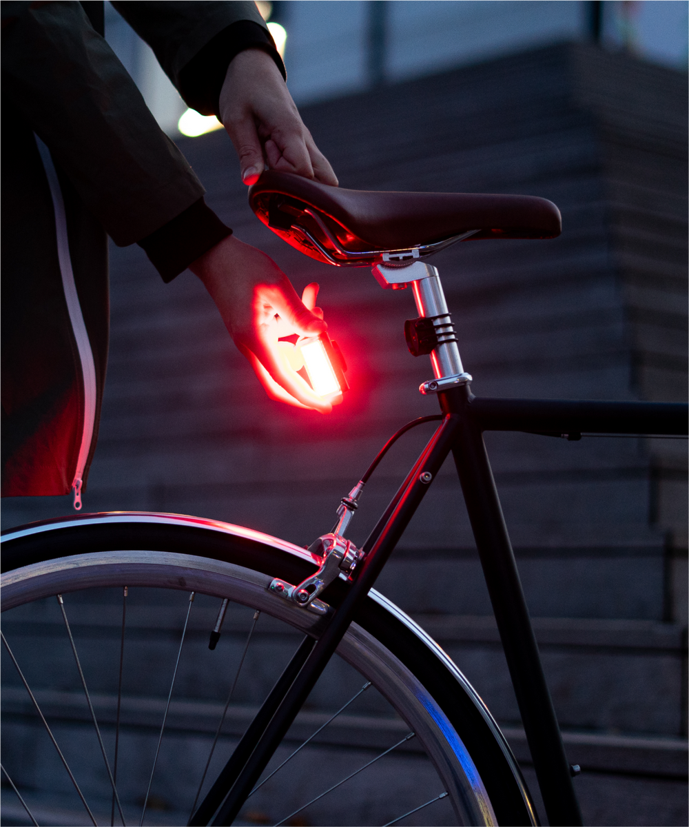 Simplemente retira la luz de su soporte magnético para recargarla o al estacionar la bicicleta en el exterior para evitar robos.