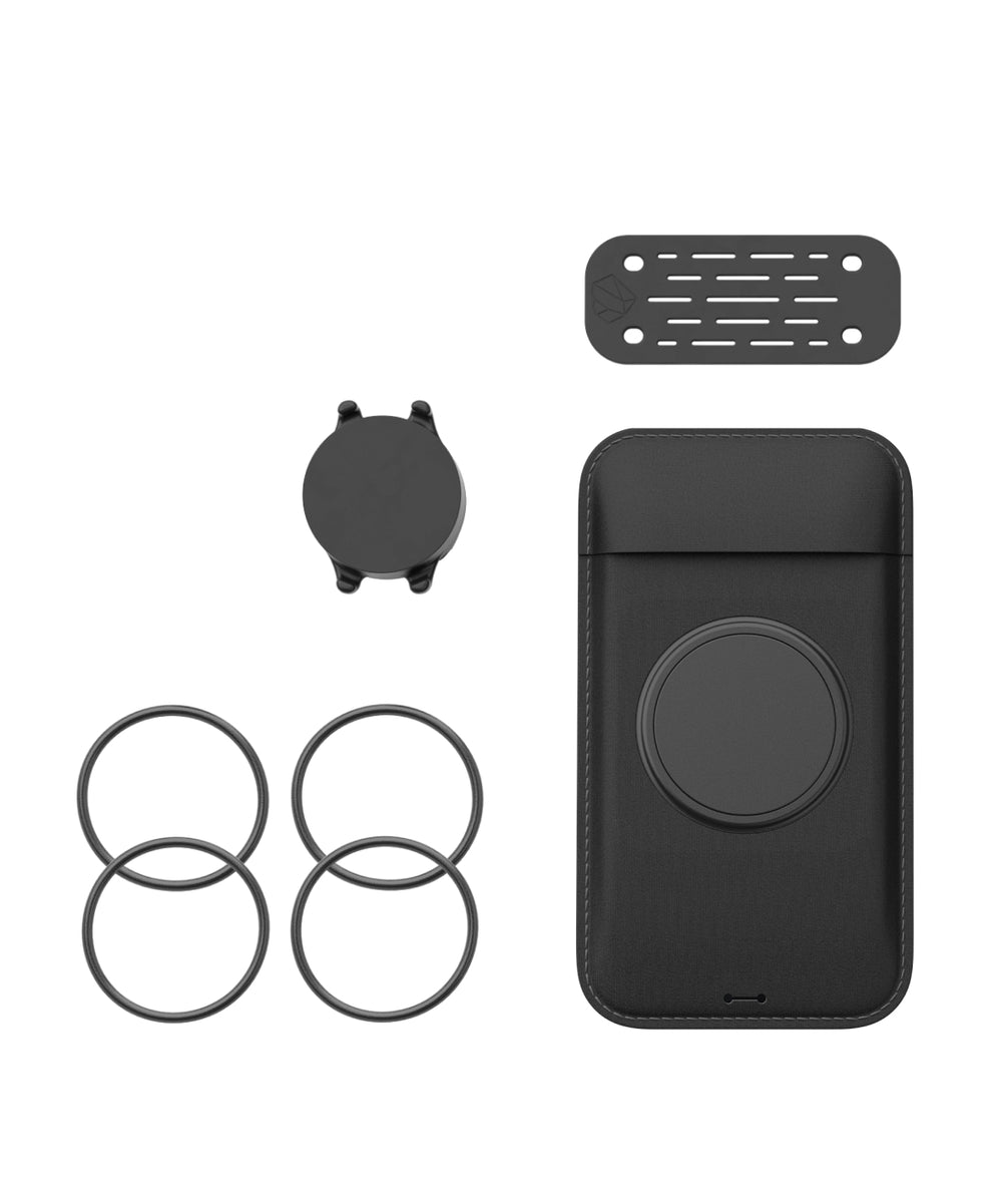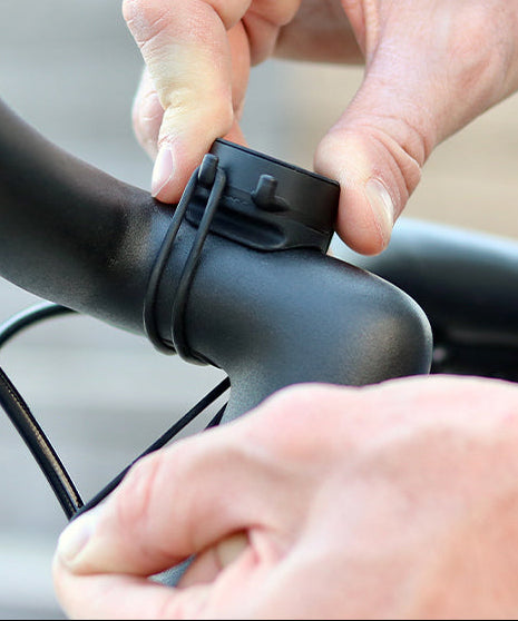 2. Coloca el soporte en el manillar o la potencia de tu bicicleta y fija la correa o las bandas elásticas al soporte.