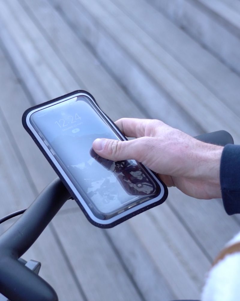 Las funda Classic y Pro ofrecen protección contra la lluvia, pero no están diseñadas para sumergirse. Para ello, elige la bolsa impermeable. En condiciones normales, puedes montar bajo la lluvia sin problemas con nuestras tres bolsas.